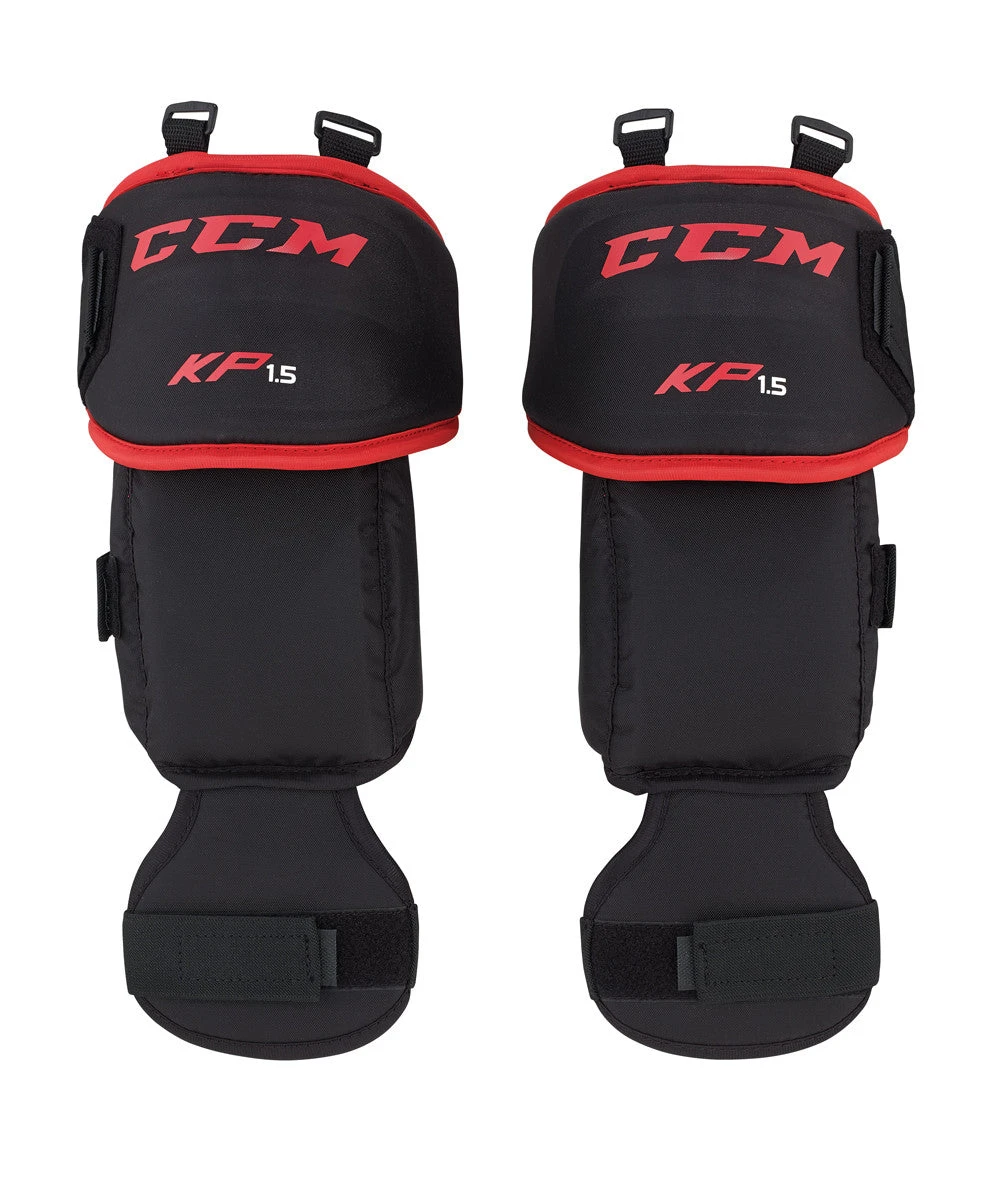 The CCM 1.5 Goalie Knee Protector offers good protection with square foam knee protection. The deep knee design provides mobility and support while wearing the knee guard. The elastic grips on the inside of the straps prevent slippage. These knee protectors are compatible with the CCM Goalie Knee Protector Waistband (sold separately).
