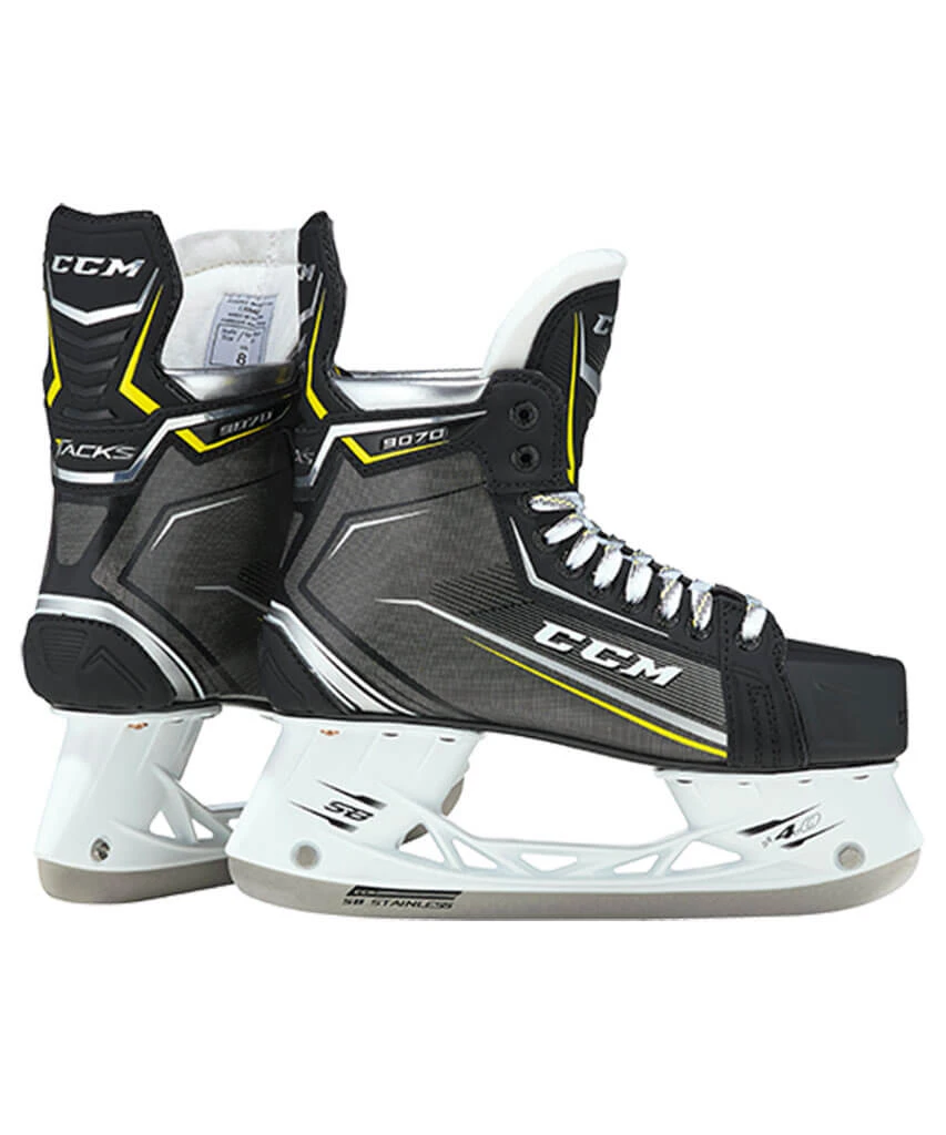 The CCM Tacks 9070 Hockey Skates are the third generation of the modern era Tacks skate that continues to revolutionize and challenge how conventional hockey skates are developed. The anatomical fit shape molds extremely well to the player’s foot giving the 9070 a tight fit. The Speedblade 4.0 Holder allows for tighter turns, maximizing agility, speed and power with optimal energy transfer.