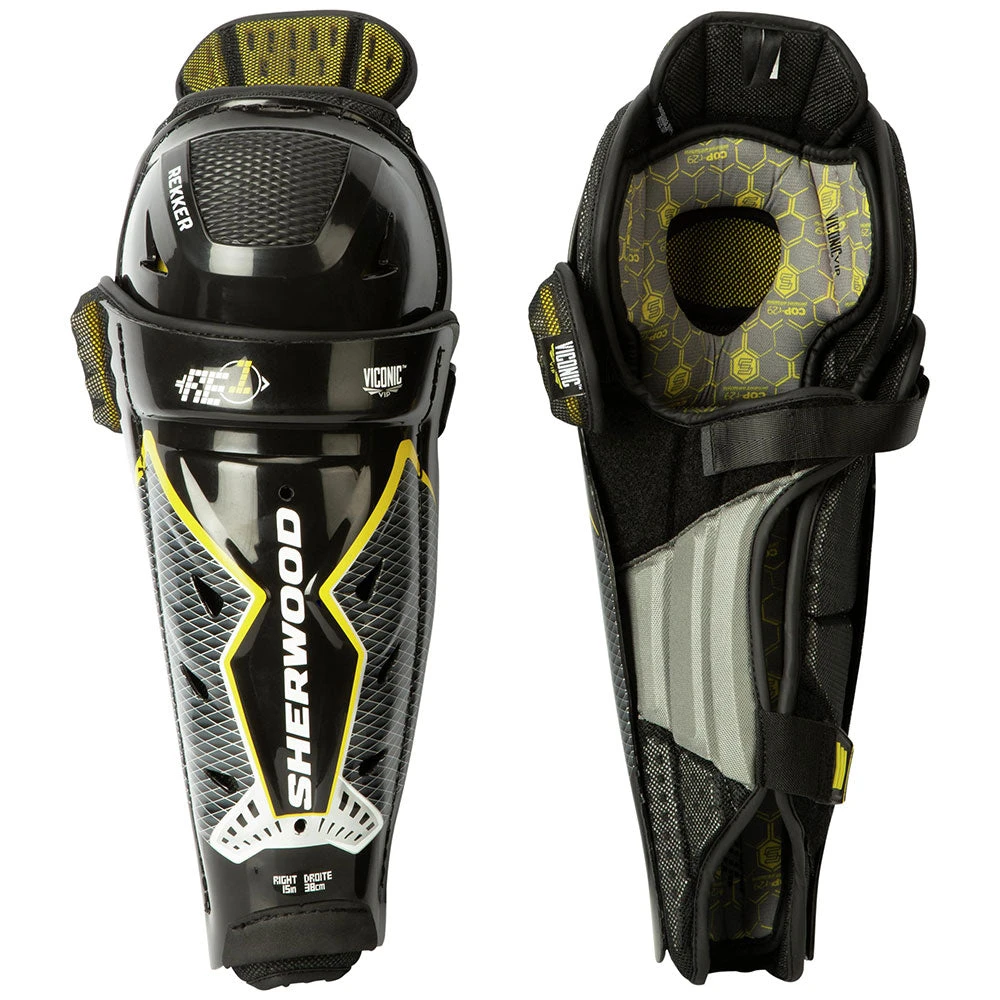 Sherwood REKKER Element 1 Shin Pads offer superior protection with Viconic technology in the knee cap and butterfly to keep you safe from impacts. Adjustable thigh-guards provide a custom fit and the copper antimicrobial material (COP-r29) liner keeps your gear fresh throughout the season.